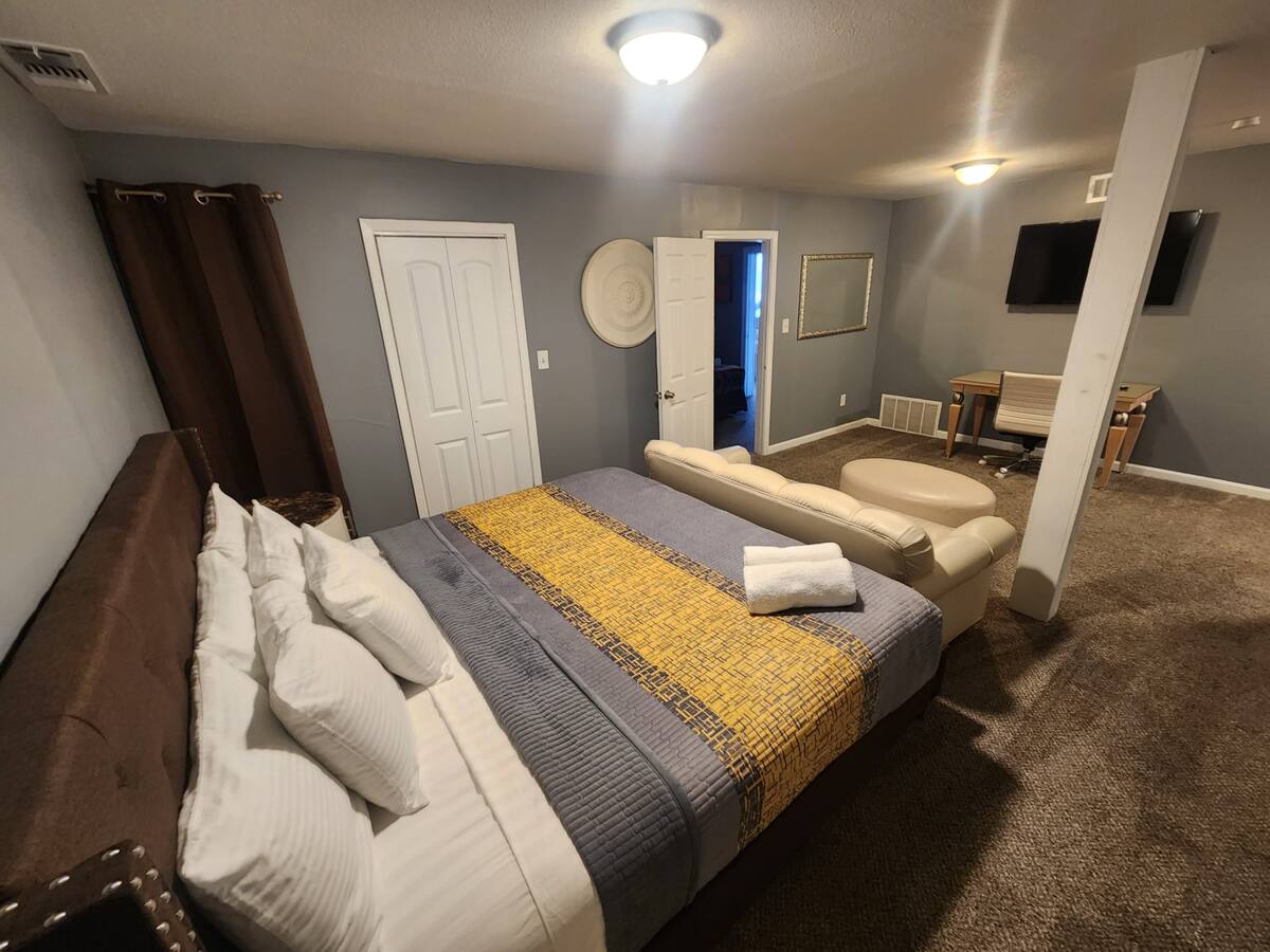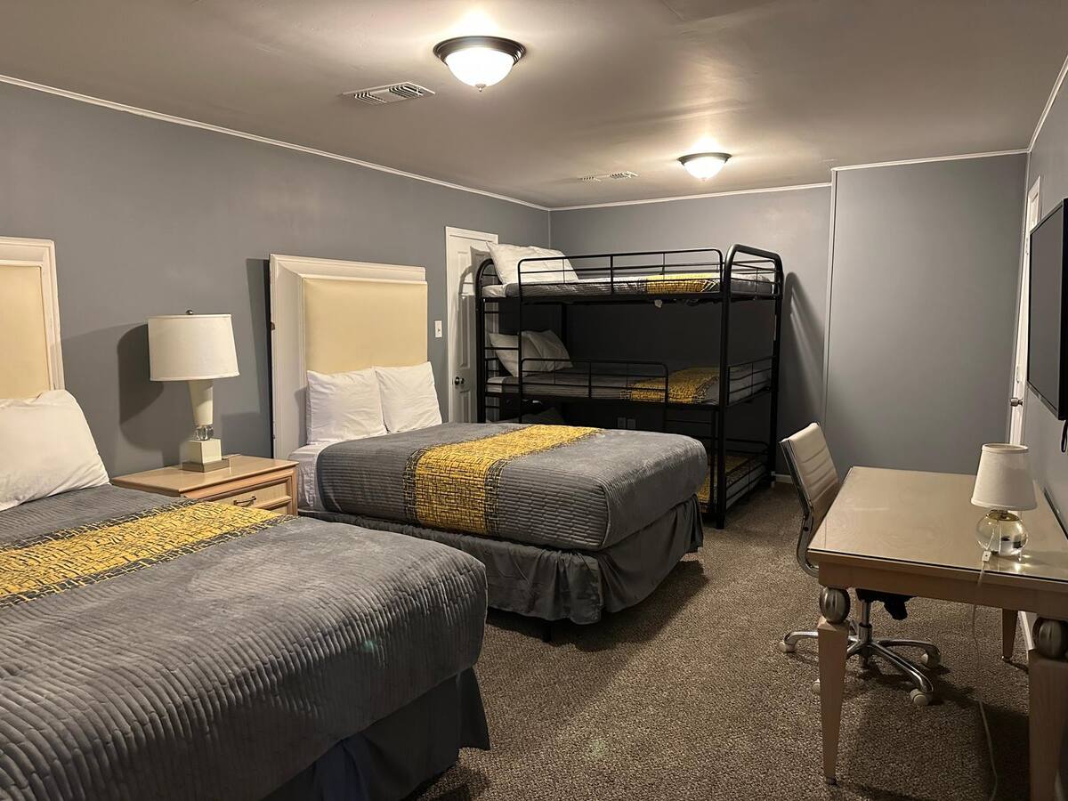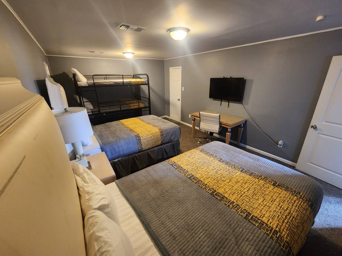 Southern Luxurious 12 Large beds with- Over 4000 Square Ft is distributed in Large 12 sleeping areas. Contains , 12 Smart Televisions to catch up with your online streaming programs. Super Fast WIFI to connect you with remote work assignments. Double Living Room. Eat in kitchen. Large Yard in a corner Lot. Resting along the eastern most border of Memphis is the large and pleasant community. Don’t forget to explore Memphis while you’re here! From Beale Street and the National Civil Rights Museum to the amazing food scene, you’ll never fall short of an adventure.